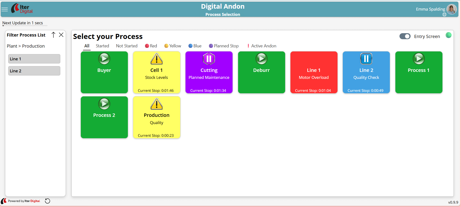 - Live overview of Andon status across the organisation